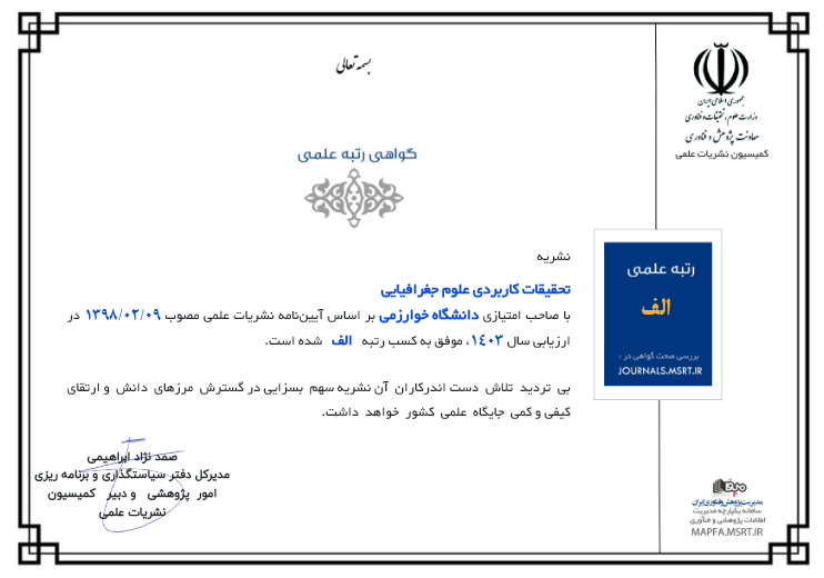 عنوان نشریه: تحقیقات کاربردی علوم جغرافیایی